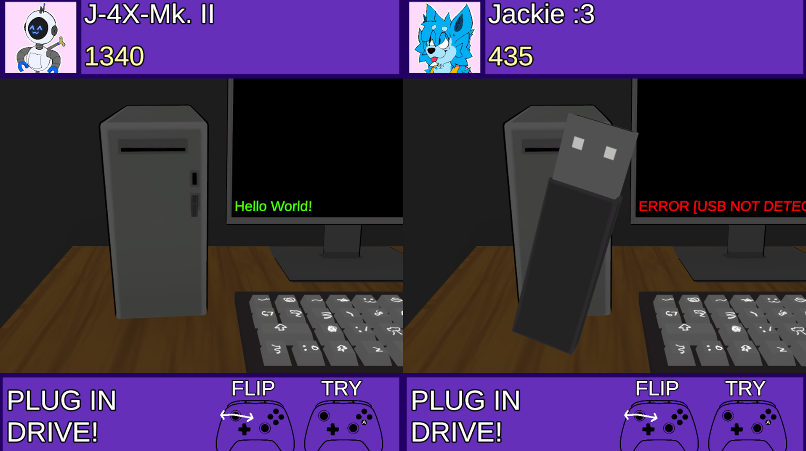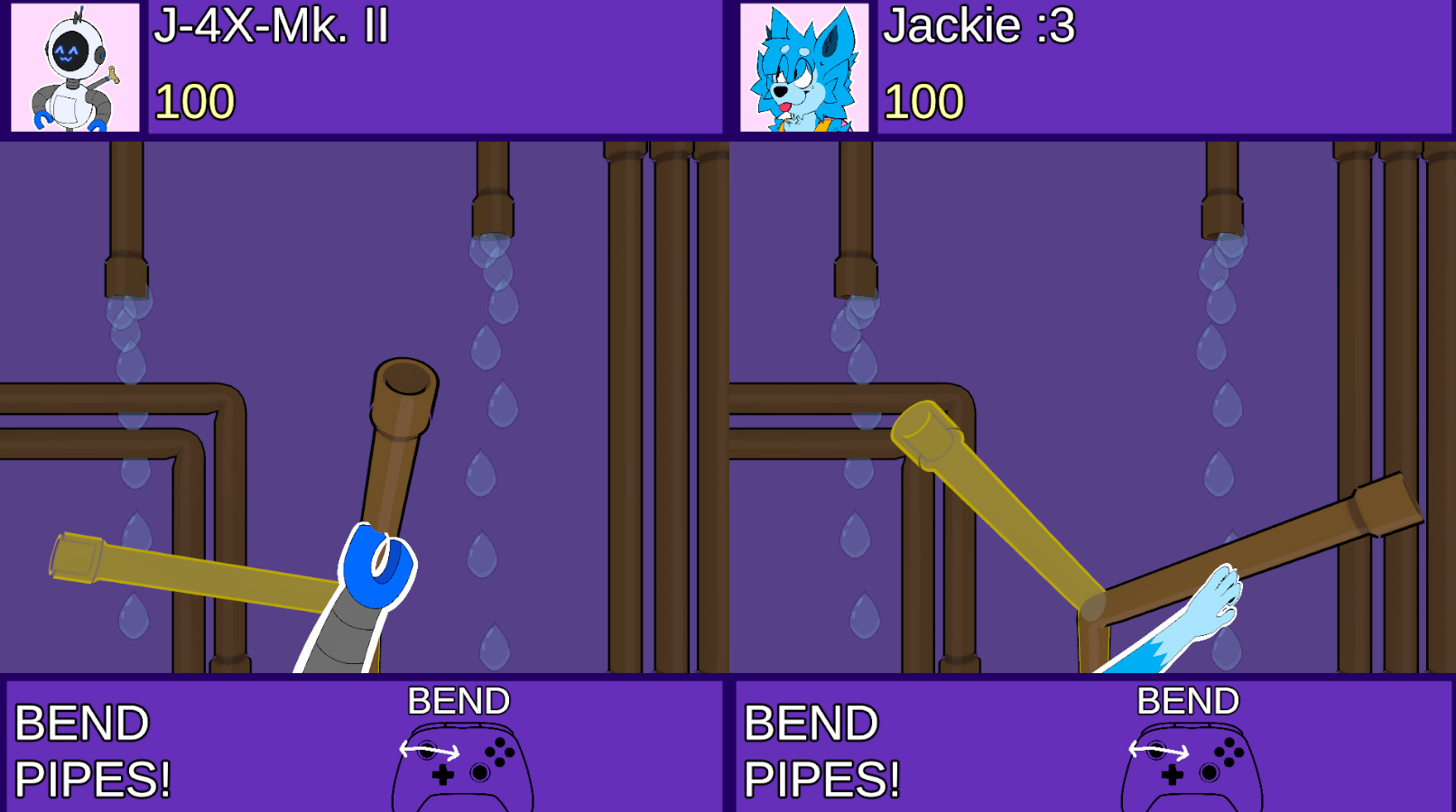 This game is played by two players, requires two controllers to be played, and was designed with Xbox controllers in mind.
